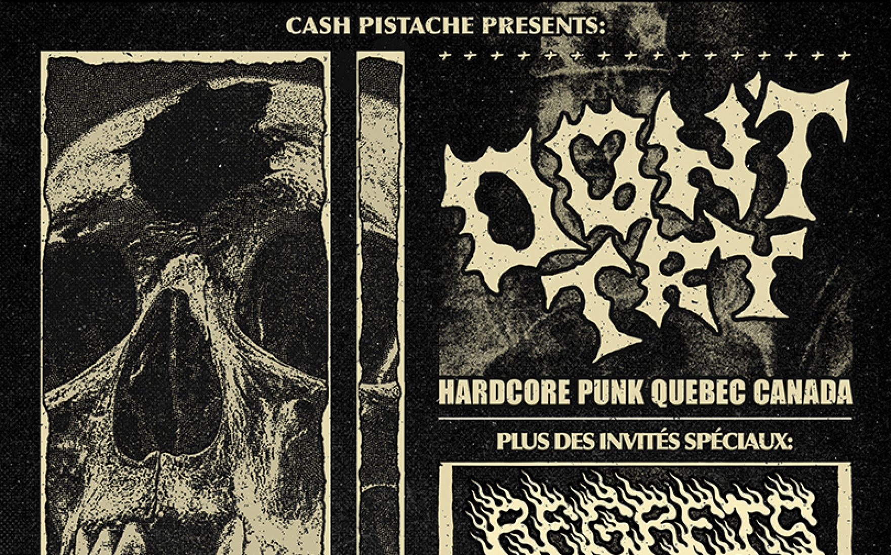 Depuis 2014, Don’t Try se démarque par un nombre important de productions indépendantes. Les locaux de Quebec City ont prouvé envers et contre tout qu’ils ne sont jamais à court de riffs explosifs et de rythmes groovy. Un mélange d’influence garages et de hardcore punk, ils ne manquent pas à la mission de créer un style unique de music extrême.