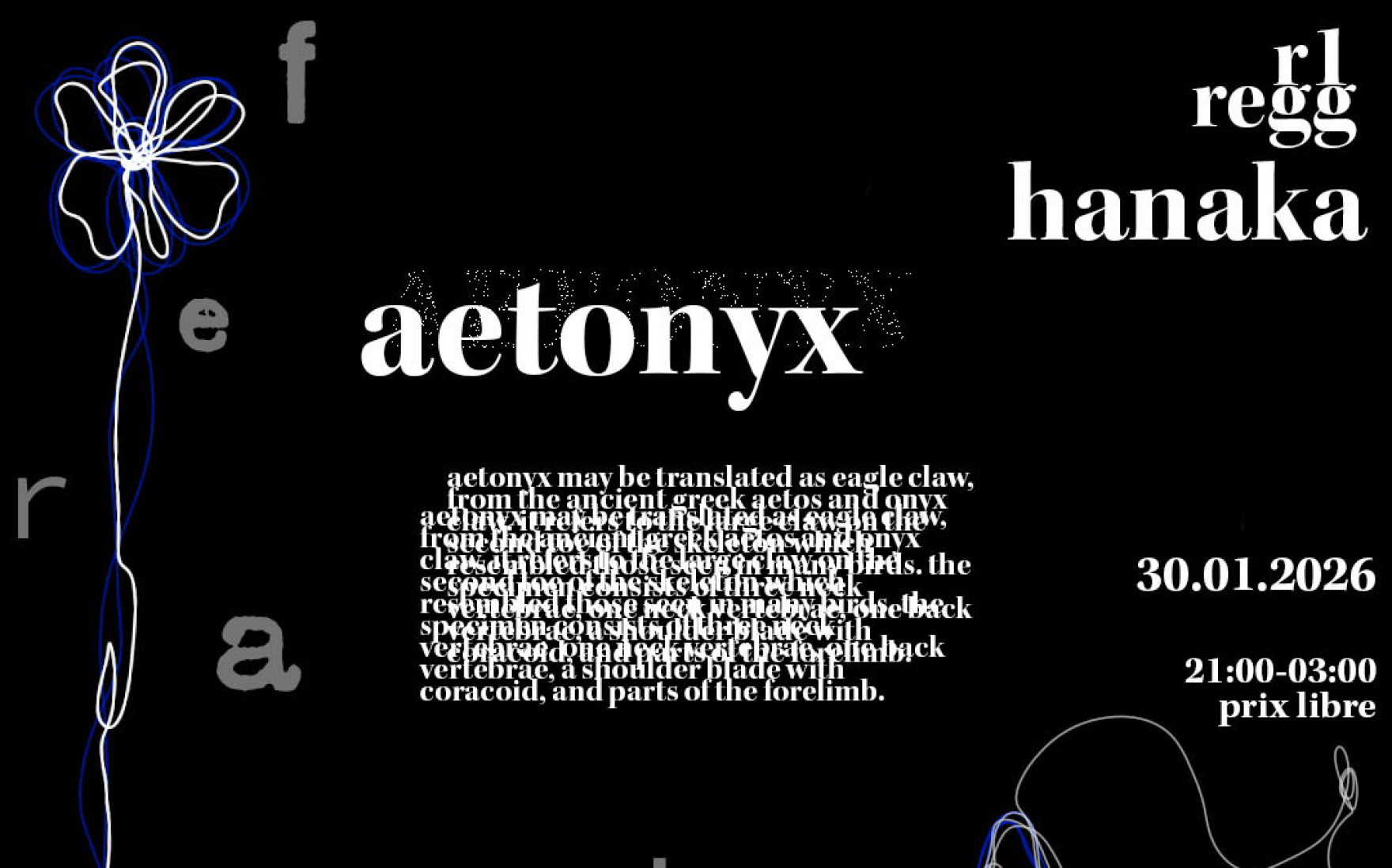On se retrouve donc le 30 janvier 2026 prochain pour la première édition d’Aetonyx, pour laquelle on est trop content·es d’inviter @hanaka____ : résidente du collectif Continuum, elle fusionne des rythmes envoûtants et des sonorités hypnotiques pour créer des sets profonds et mentaux. Oscillant entre une énergie sombre et des ambiances captivantes, elle ouvre une exploration musicale qui invite les danseur.se.s à lâcher prise. Chaque sélection est soigneusement élaborée, transformant la piste de danse en un espace de communion libératrice, où la diversité des sons et des textures crée une expérience immersive unique.